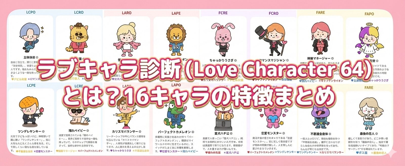 「ラブキャラ診断(Love Character 64)」の土台になる“基本16キャラ”を、一覧で分かりやすく紹介します。